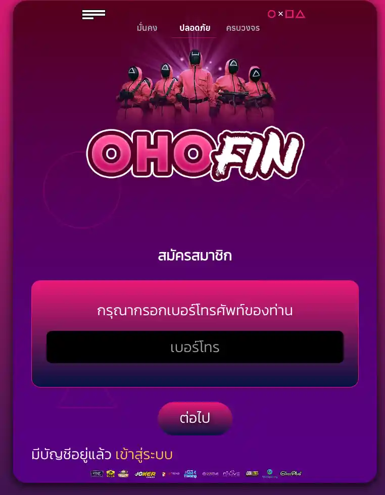 มองหาทางเข้าเล่นสล็อตที่รวมค่ายดังไว้ครบที่สุด แถมแตกง่ายแบบไม่ต้องลุ้นเหนื่อย บอกเลยว่ามาถูกที่แล้ว เพราะการ สมัครสมาชิก OHOFIN ครั้งเดียว จะได้เข้าถึงอาณาจักรเกมสล็อตทุกประเภท ไม่ว่าจะเป็นสล็อต 3D กราฟิกสวยๆ หรือสล็อตคลาสสิกที่โบนัสแตกยับๆ คัดมาให้เน้นๆ ระบบที่นี่เป็นออโต้แท้ 100% ที่สำคัญคือ “ไม่ต้องรอรหัส OTP” ให้เสียอารมณ์ แค่กรอกเบอร์โทรศัพท์ก็เข้าเล่นได้ทันที จะปั่นสล็อตช่วงไหนตอนไหนก็ไหลลื่น ไม่มีสะดุด พร้อมทีมงานแอดมินที่คอยซัพพอร์ตตลอด 24 ชั่วโมง มั่นใจได้เลยว่า สะดวก ครบ และถอนเงินได้จริงแน่นอน